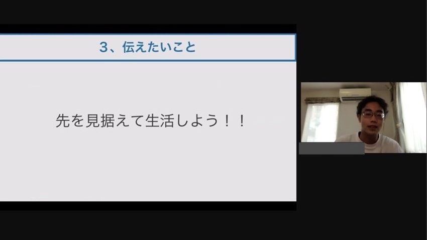 今回のオンラインセミナーでは、「さらにもう一歩上へ行ける実力を身につける」を目標に、大学生の話を聞いたり、勉強習慣に関して改善できるところを考えたりしていただきました。